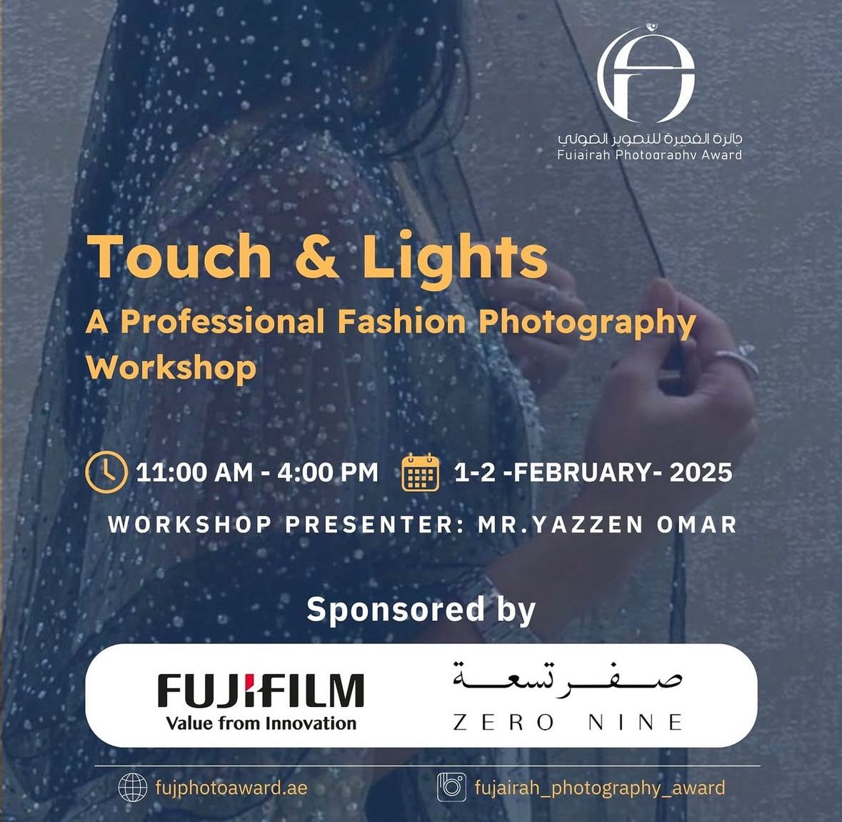 A professional Fashion Photography Workshop Time: 11:00 AM Workshop Presenter : Yazzen Omar Workshop Sponsors: Zero Nine Fuji Film